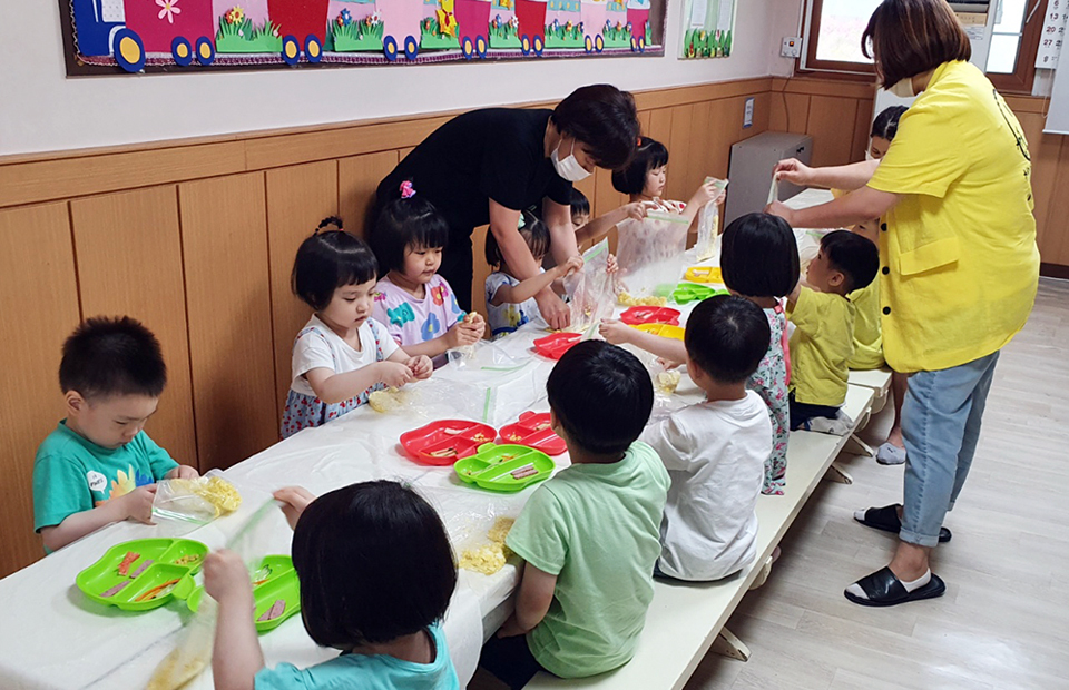 동화요리 동화를 통해 호기심과 상상력을 자극해요~ 당근, 오이도 싹둑싹둑 자르고, 포슬포슬하게 삶은 감자도 으깨서 감자계란 샌드위치를 만들어요~ 몸이 튼튼해지고 건강해져요~